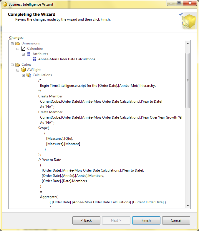 Attention, le calcul est figé au moment de l’exécution du Wizard et donc des modifications du cube peuvent nécessiter une correction du script MDX généré.